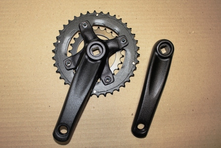 Kurbelgarnitur mit wechselbaren Kettenblättern, 140 und 152 mm Kurbellänge, 38/24 Zähne